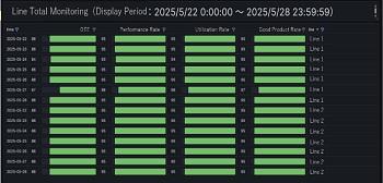 DX1 comes with standard packages that provide templates for key indicator data used in equipment monitoring, operation status monitoring, factory monitoring, and more. Data can be displayed in a tiered structure to suit the needs of a wide range of users, from factory managers to on-site workers, allowing them to drill down from the factory’s production plan targets to equipment operation status. DX1 can also be customized for your site environment using PythonTM and C, to enable connection with controllers from other manufacturers or for complex calculations.